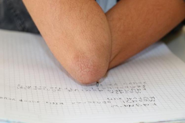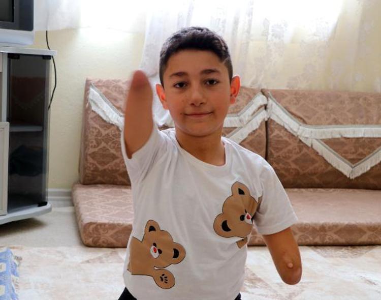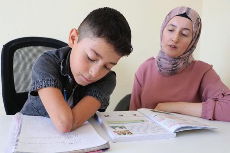 Sosyal bilgiler, matematik, Türkçe gibi tüm dersleri öğretmeniyle çalışan Nakşin, kalemi kollarıyla tuttuğunu ve en büyük isteğinin protez olduğunu söyledi.