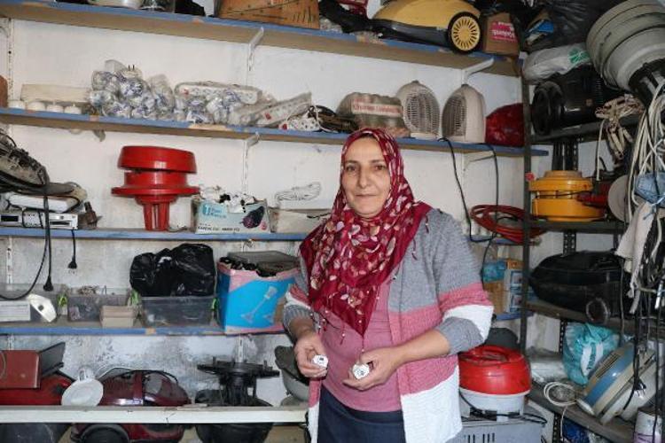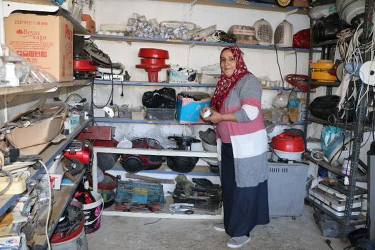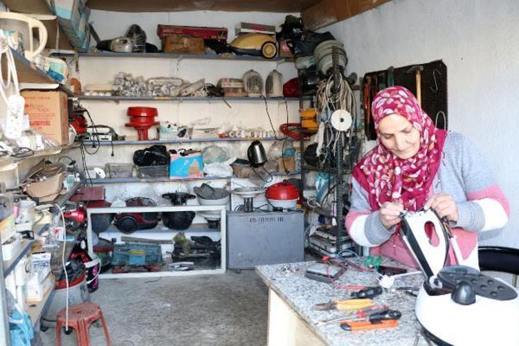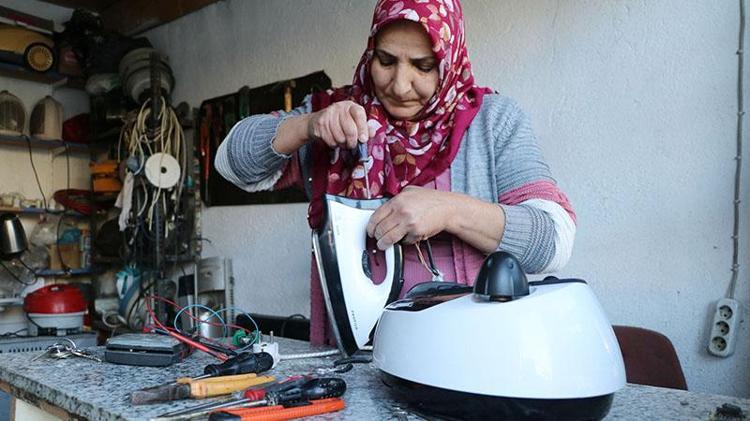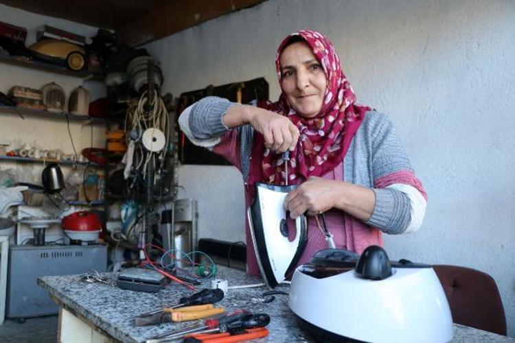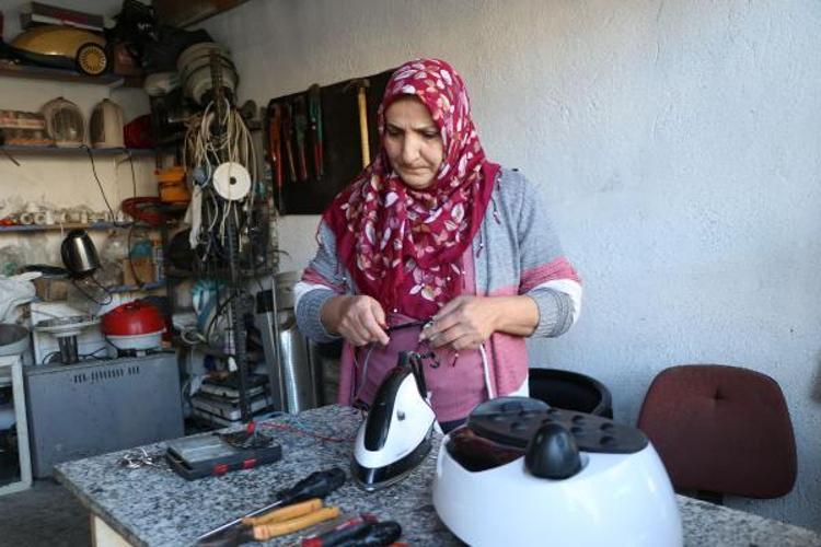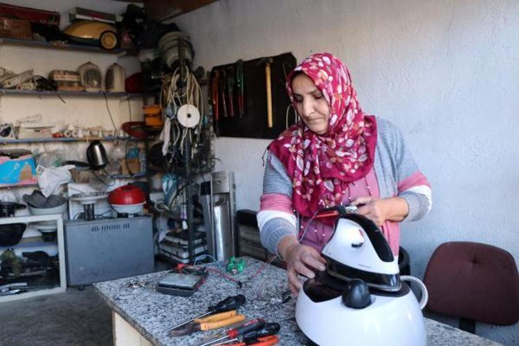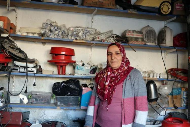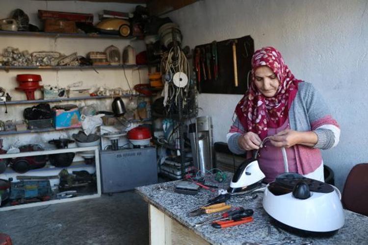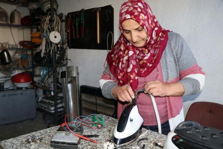 Van'da, elektrikli ev eşyaları tamir dükkanı işleten eşi Ziya Curga (50), 15 yıl önce sağ kolunu spiral makinesine kaptırıp kullanamayınca mesleğini, eşi Nazime Curga (40) devraldı. Nazime Curga, "Beyaz eşya dahil birçok elektrikli ev aletinin tamirini yapıyorum. 4 öğrencimi bu şekilde okutuyorum. Müşterilerim işimden çok memnun" dedi.
