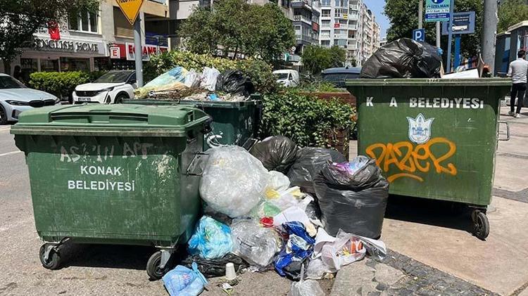 Konak'ta grev kararı sonrası sokaklarda çöp yığınları oluştu