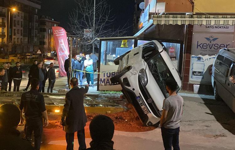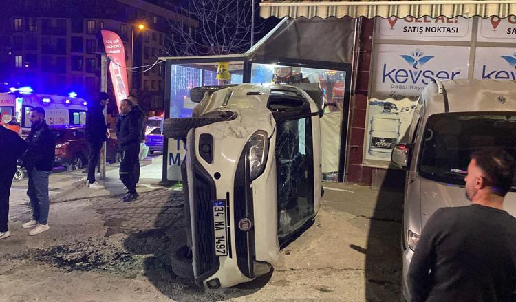 Takla atan otomobim yol kenarındaki marketin girişinde yan yattı.