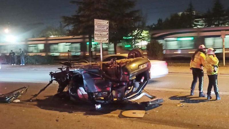 Kontrolden çıkan otomobil, refüjdeki ağaca çarpıp takla attı: 2 yaralı