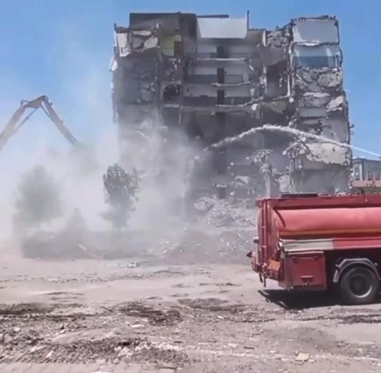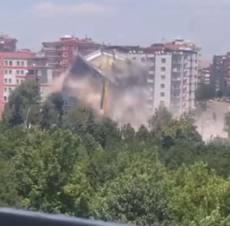 Diyarbakır’ın Kayapınar ilçesinde 6 Şubat 2023 depremlerinde ağır hasar alınca boşaltılan 8 katlı bina, kontrollü yıkım sırasında çöktü. O anlar, cep telefonuyla görüntülendi.