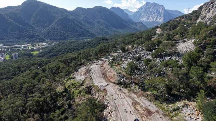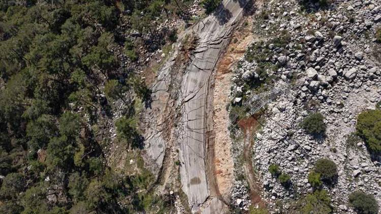 Antalya'da etkili olan kuvvetli sağanak ve fırtına sonrası Konyaaltı- Hisarçandır yolunda meydana gelen heyelanın etkisiyle asfalt yol çöktü. Güvenlik amacıyla yol trafiğe kapatıldı, meydana gelen hasar dron ile görüntülendi.