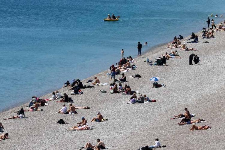 Antalya'da hava sıcaklığının 21 dereceyi bulmasını fırsat bilen yerli ve yabancı tatilcilerden bazıları Konyaaltı Sahili'nde denize girdi, bazıları güneşlenmeyi tercih etti.