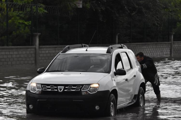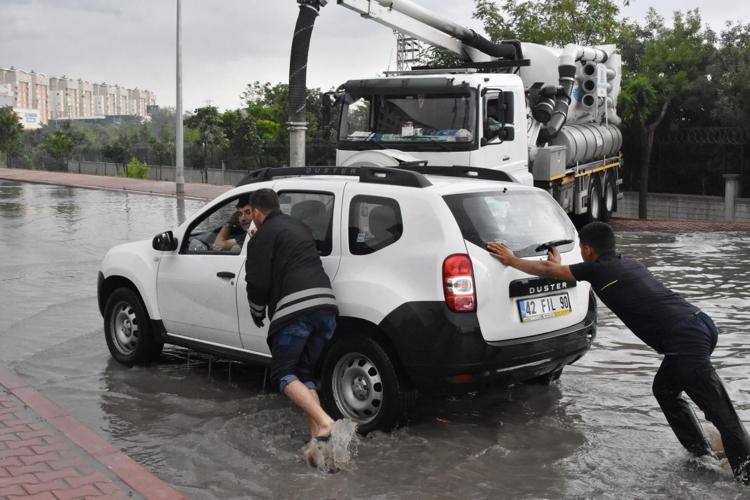 KONYA'da akşam saatlerinde başlayan sağanakla birlikte yollar göle döndü. Çok sayıda araç yollarda mahsur kaldı.