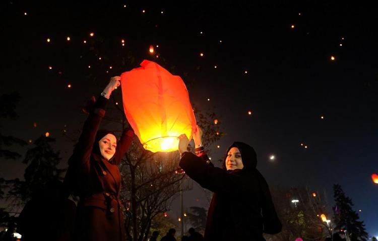 Gökyüzüne bırakılan dilek fenerleri renkli görüntüler oluşturdu. Yarın sabah ise çocuklar, manilerle kapı kapı dolaşıp, evlerden çikolata ve şekerleme gibi hediye ve yiyecek (şivlilik) toplayacak.