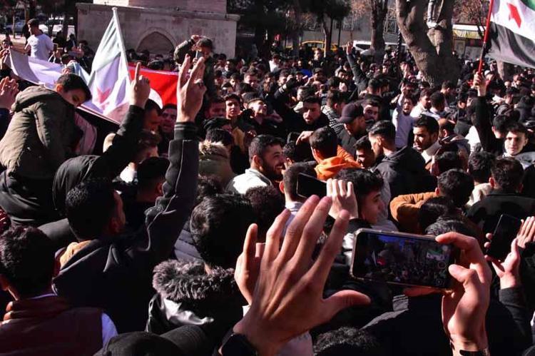 Konya'ya yaşayan Suriyeliler, Şems-i Tebrizi Türbesi önündeki parkta toplanıp, Esad yönetiminin kontrolünü kaybetmesini, 'Suriye birdir' sloganlarıyla kutladı.