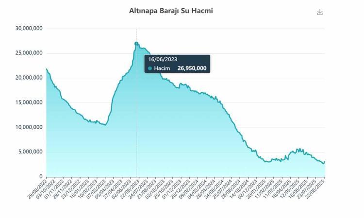 Altınapa Barajı için planlanmış olan 3 milyon metreküp civarında. Bunun altına düştüğü zaman artık normal kullanım için su verilmiyor. Çünkü orada bir ekosistem var. Orada canlılar var ve onlara da su gerekiyor. Bütün barajlarda bu tür önlem alınıyor. Tabii son 30-35 yıllık periyot içerisindeki en kurak yaz mevsimini yaşıyoruz. Halen de yağışların azlığı devam ediyor. Havza içerisindeki yağış durumuna baktığımız zaman, geçtiğimiz yıldan bu yana maalesef 300 milimetrenin altına düştüğü görünüyor. Bunun anlamı şu; bu yıl ve geçtiğimiz yılki kış kuraklığı yaz kuraklığına eklendiği zaman, uzunca bir süre barajlarımız suyu telafi etme noktasında zorluk yaşayacak gibi görünüyor. İnşallah önümüzdeki dönem içerisinde eksiklikler telafi edilebilir" dedi.