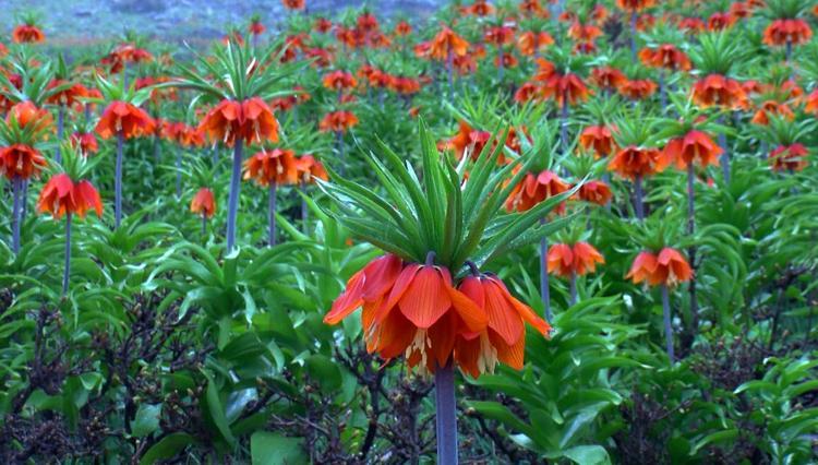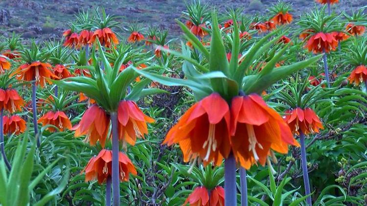 Halk arasında 'ağlayan gelin' olarak bilinen ters laleler, baharla birlikte yüksek rakımlı, sarp dağlarda açmaya başladı. Karaağaçlı beldesi kırsalındaki 1800 rakımlı dağın zirvesi, sadece 15 gün canlılığını koruyan ters lalelerle renklendi.