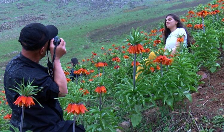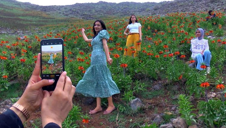 Muş'ta 1800 rakımlı dağın zirvesi, sadece 15 gün canlılığını koruyan ve halk arasında 'ağlayan gelin' olarak bilinen ters lalelerle renklendi. 2 saatlik zorlu yolculuğun ardından zirveye çıkanlar, koparmanın suç olduğu çiçeğe dokunmaya bile çekindi. Fotoğraf sanatçısı Kenan Demir, "Ters lalelerimiz, koruma altındadır. Koparılmasının cezası 109 bin 593 TL'dir" dedi.