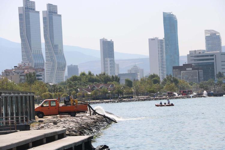 İzmir Büyükşehir Belediyesi Deniz Koruma Şube Müdürlüğü ekipleri tedirginlik yaratan ölü balıkları toplamak için çalışma başlattı. Ekipler, tahlil edilmek üzere denizden ve balıklardan numune aldı.