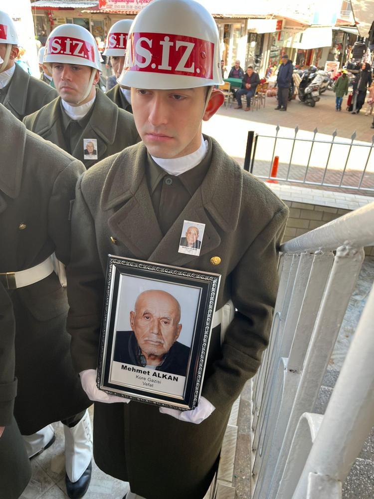Aydın'ın Bozdoğan ilçesinde 93 yaşında hayatını kaybeden Kore Gazisi Mehmet Alkan, düzenlenen askeri töreninin ardından toprağa verildi.
