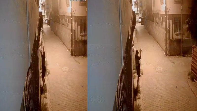 Adana'da 2 çocuğun, müstakil evin korkuluklarına tırmanıp, ikinci katın penceresindeki kediyi çaldığı anlar, güvenlik kamerasına yansıdı.