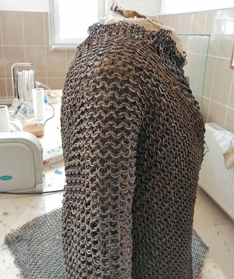 Zırhların o dönemde özenle yapıldığını vurgulayan Eser, "Zincir örgü denilen bir teknik kullanılıyor. Bu tekniğin Avrupa'da özellikle M.Ö. 3'üncü yüzyıldan itibaren verileri var. Bütün kültürlerde savunma araç gereçleri arasında zırh var. Doğu savunma anlayışı ve zırh imalatı içerisinde deri çok önemli bir yer tutuyor. Özel tekniklerle deriyi kalınlaştırıp hayati organları kapatacak şekilde kullanıyorlar. Ama bu zincir örgüde çok sayıda yapılmış sayısal denemeler var. Çok sayıda zincir halkası bir araya getirilerek ok ve kargı gibi çeşitli silahların vücuda zarar vermesinin engellenmeye çalışılması söz konusu. Bu açıdan batıda geliştirilmiş gibi görülüyor. Yapılan sayısal denemelerle altlı üstlü olarak bir zırh yapmak istediğinizde yaklaşık 130 bin halka üretmeniz gerekiyor.