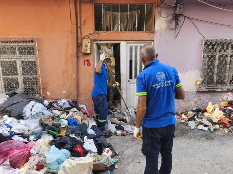 Adana'da kötü koku şikayetiyle gidilen Ayşe Ç.'nin (78) evinden 2 kamyonet çöp çıkarıldı.