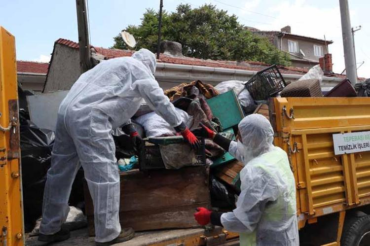 Kötü kokular gelen evden 4 kamyonet çöp çıktı