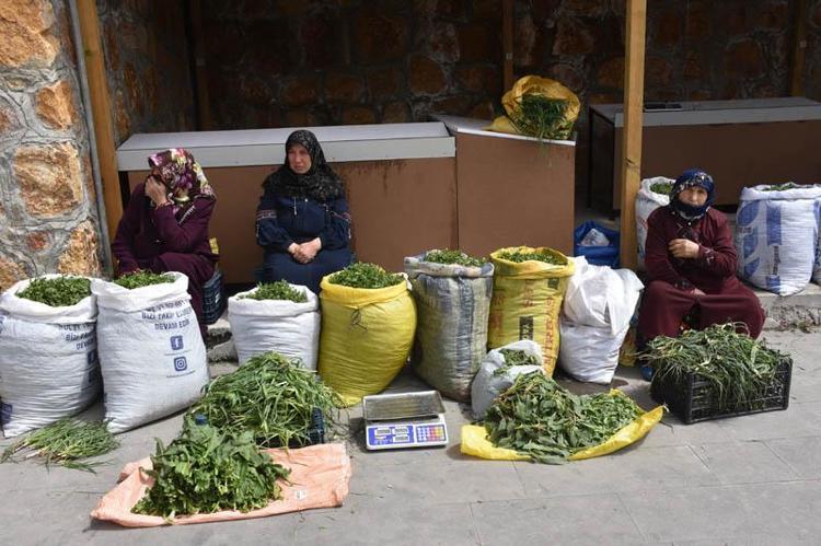 Tek tek kendi elimizle topluyoruz, getirip burada satıyoruz. Madımağın yanı sıra yine doğadan topladığımız evelik, yemlik, ısırgan otu, gelin parmağı gibi bitkileri de getirip satıyoruz" ifadelerini kullandı.