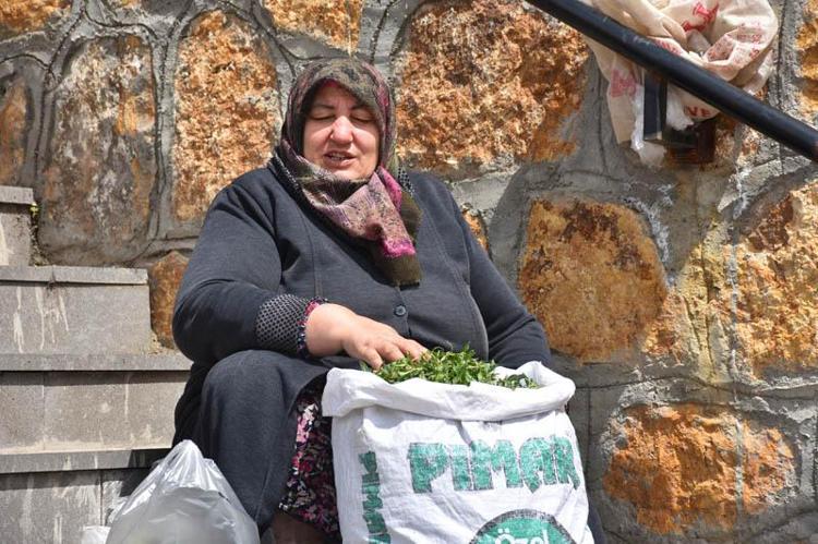 Merkeze bağlı Kızılcaköy'den topladığı madımağı pazarda satan Safiye Töker (65) ise "Bu sene madımak bol. Bir günde 2 torba topluyorum. Çok zahmetli oluyor toplaması.