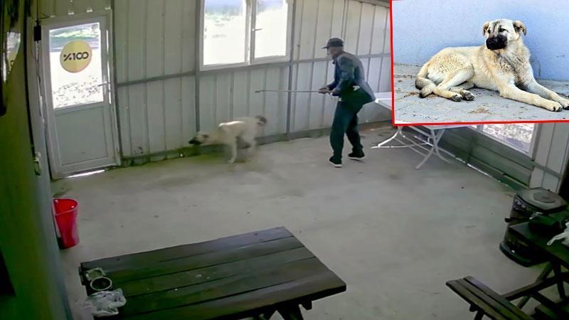Köy kahvesinde bakılan köpeği bastonuyla darbetti; o anlar kamerada
