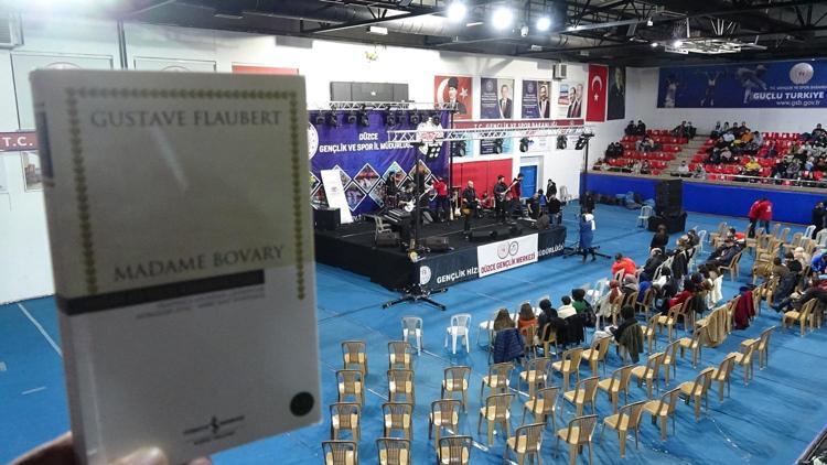 Düzce’de gençlik merkezlerinde müzikle uğraşan gençler, köy okullarının kütüphanelerindeki eksik kitapları tamamlamak ve yeni kütüphaneler kurmak için bilet yerine kitapla girilen konser düzenledi.