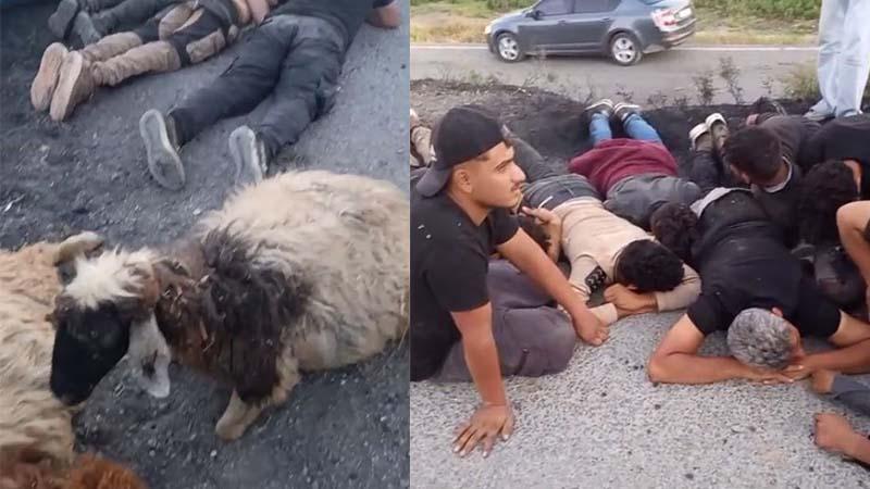 İhbar üzerine kaza yerine polis ekipleri sevk edildi. Kazada iki koyun yaralanırken, 14 kaçak göçmen ise Göç İdaresi Müdürlüğü'ne teslim edilmek üzere gözaltına alındı. Polis, kaçan otomobil sürücüsünü yakalamak için çalışma başlattı.