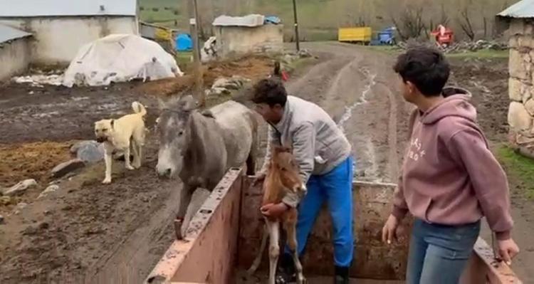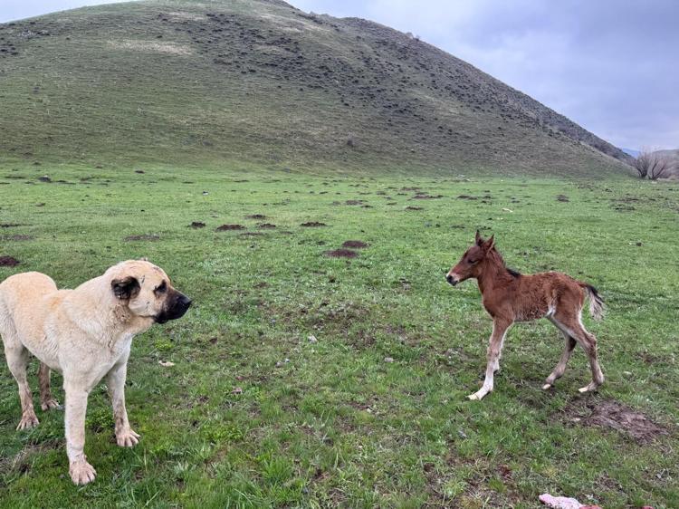 Erzurum'un Karayazı ilçesinde farklı tarihlerde doğum yapan koyun ile eşeğin yanında kalarak koruyan, çoban Siraç Çetin'i ise kurt saldırısından kurtaran Kral, bu kez yine yaylada doğum yapan at ile yavrusunu yalnız bırakmadı.