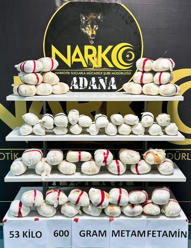 Adana’da narkotik polisinin takiple durdurup, arama yaptığı hafif ticari araçta narkotik köpek ‘Aşil’ bagajdaki kovanlara tepki verdi. Araç sürücüsü Erdem B, “Kraliçe arımız var, onu taşıyoruz” dedi. Kovanların içini açan polis 53 kilo 600 gram metamfetamin ele geçirdi.