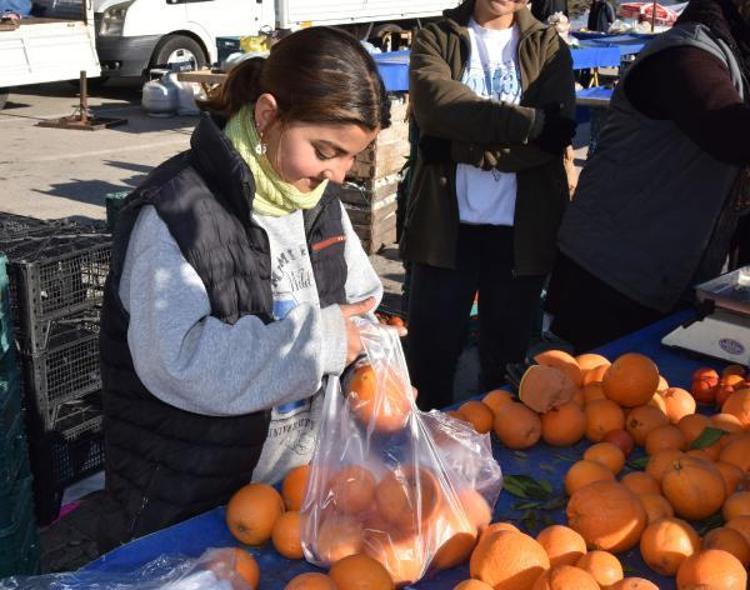 Küçük Zeliha, depremzedeler için pazar tezgahlarından meyve ve sebze topladı