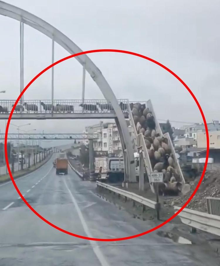 Küçükbaşlar, üstgeçidi kullandı; o anlar kamerada