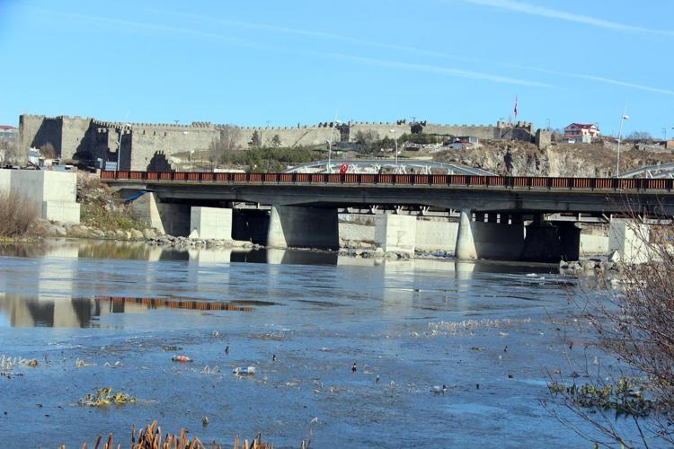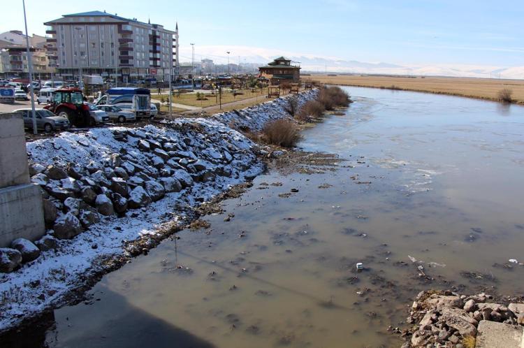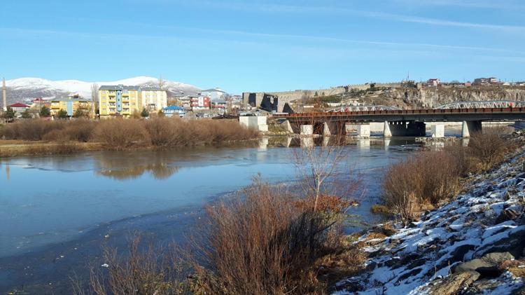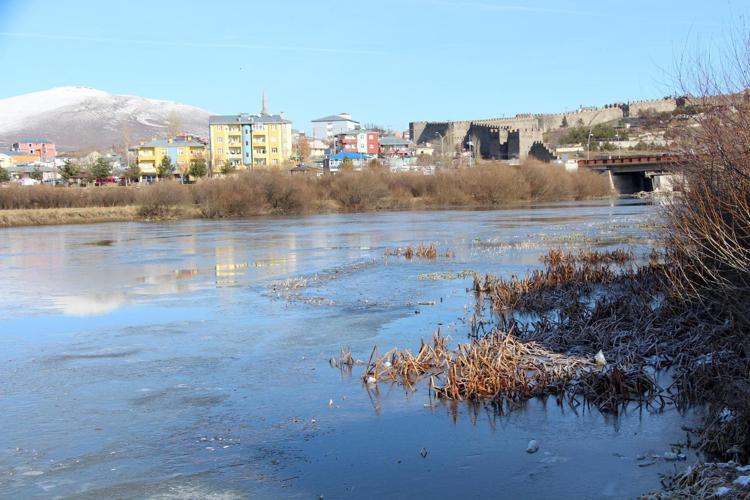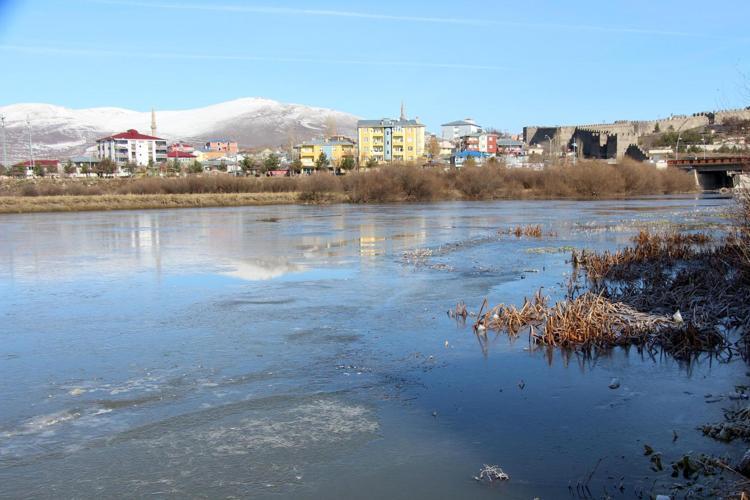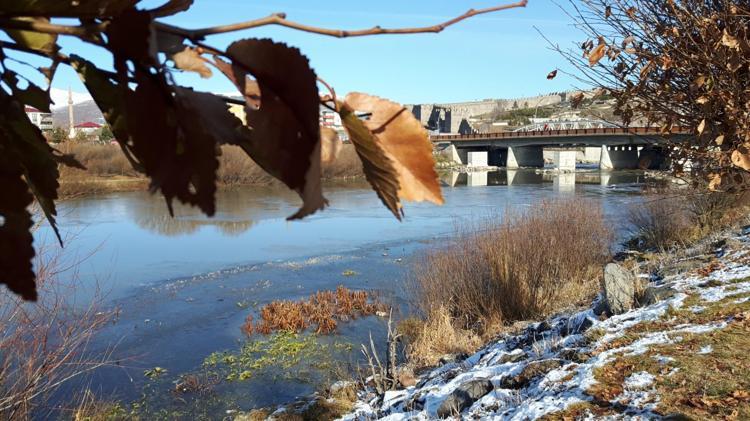 Ardahan kent merkezinden geçerek Gürcistan ve Azerbaycan üzerinden Hazar Denizi'ne dökülen Kura Nehri'nin yüzeyi buz tuttu.