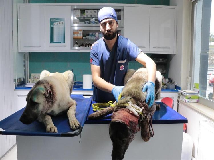 Köpekler hakkında bilgi veren Veteriner hekim Ali Kocataş, "Bu arkadaşlar, KAYHAKDER tarafından kliniğimize getirildi. Kliniğimizde cerrahi müdahaleler yapıyoruz. Kanama olaylarına alışkınız ama bu arkadaşlar geldiği zaman bizi çok etkiledi. İnanılmaz bir ağrı ve ciddi bir kanamayla kliniğimize geldiler. İlk müdahalelerini hemen yapıp, kanamalarını durdurduk. Ağrı yönetimini yaptık. Şu an herhangi bir kanama veya ağrı hissetmiyorlar. Bundan sonrası için bir cerrahi planlama yapılması gerekiyor. Tedavileri devam edecek. KAYHAKDER, bunu yapan şahsı polise bildirmiş. Bununla ilgili işlem başlatılmış. Biz de onun takipçisiyiz" diye konuştu.