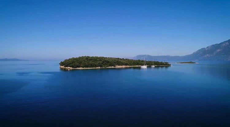Muğla'nın Gökova Körfezi'ndeki, koruma altında olan altın sarısı renkli kumuyla ünlü Sedir Adası, dronla havadan görüntülendi.
