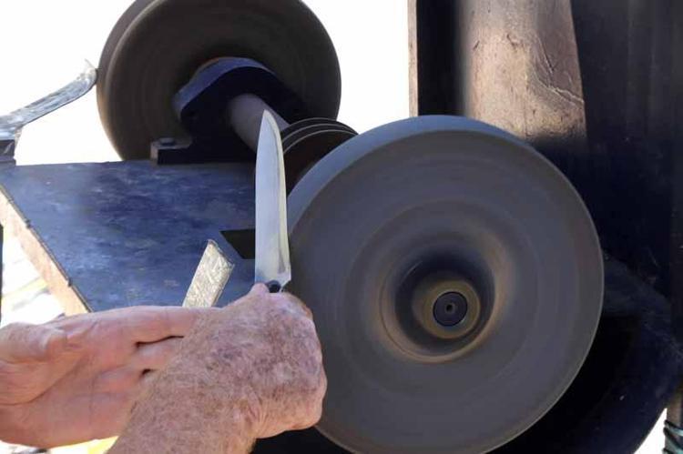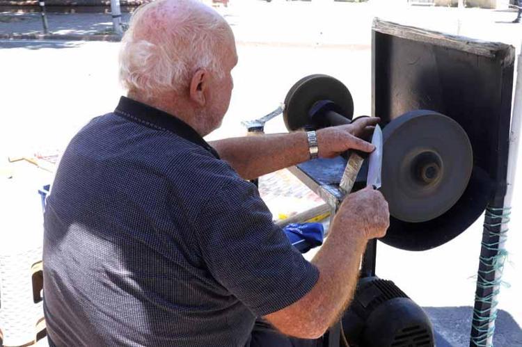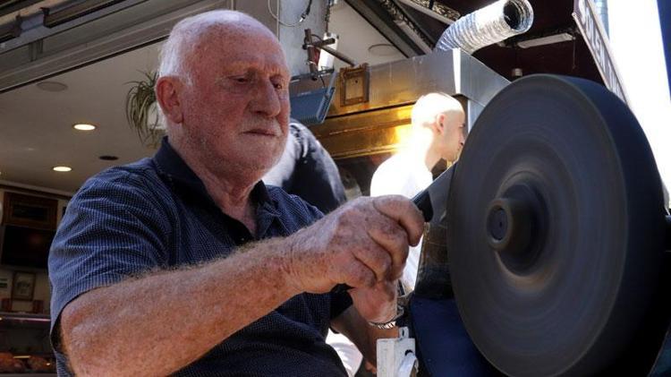 Bıçak bileyleme ustası Aydın Işık, 65 yıldır bu mesleği yaptığını belirterek "İtinalı şekilde bıçakları biliyoruz.