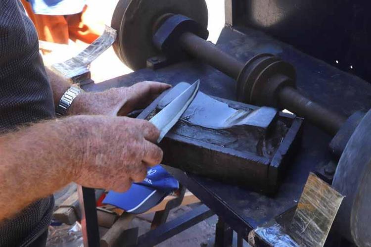 Bu işlem 6 kademede yapılır. Kalın ve ince taştan geçirdikten sonra, keçe üzerinde ve yağ taşıyla bileriz. Masa üzerinde de işlem yaptıktan sonra keskinliğini kontrol ederiz. Böylece bıçak hazır olur. Piyasada sadece 2 adımla yapılıyor, bu olmaz. Hayvanlar zarar görmesin. Bayram öncesi ortalama günde 500 bıçak biliyoruz" şeklinde konuştu.