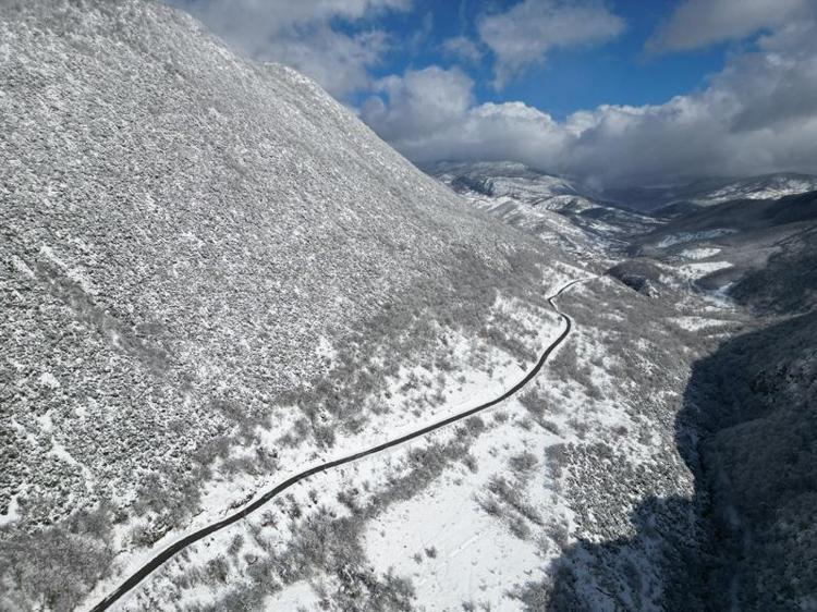 Küre Dağları Milli Parkı'nın Bartın’ın Ulus ilçesindeki bölümlerinde bin 300 rakıma ulaşan dağlarda, kar kalınlığı 50 santime yaklaştı. Her mevsim ayrı güzelliğe bürünen milli parkta kar yağışının durmasıyla güneş yeniden ortaya çıktı. Kış mevsiminin tüm güzelliklerini içinde barındıran milli parkta manzaralar hayran bıraktı. Milli parkın eteklerinde bulunan beyaz örtüyle kaplanan Drahna Vadisi’ndeki Ulukaya, Alıçlı, Çıraklar, Köklü, Çamdibi, Kozanlı, Aşağıdere, Yukarıdere köyleri ve eşsiz güzellikteki dağlar havadan dronla görüntülendi.