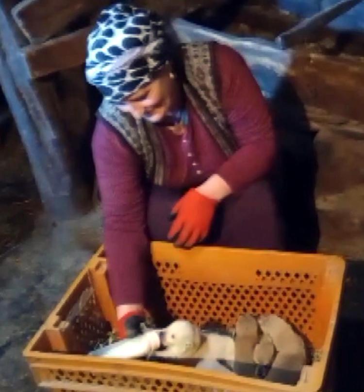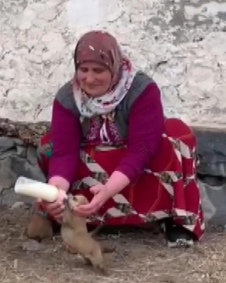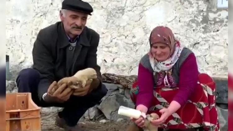 Kars'ın Göldalı köyünde Sevilay (55) ve Ömer Dumanoğlu (57) çifti, kurt saldırısında ölen köpeklerinin 8 yavrusunu biberonla besliyor.