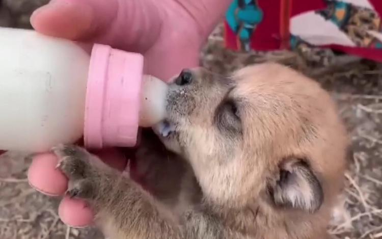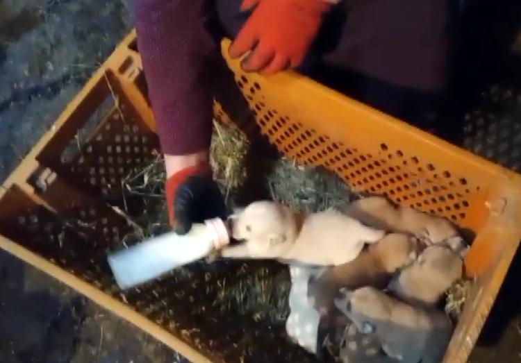 Kurt saldırısında anneleri ölen 8 yavru köpeği, biberonla besliyorlar