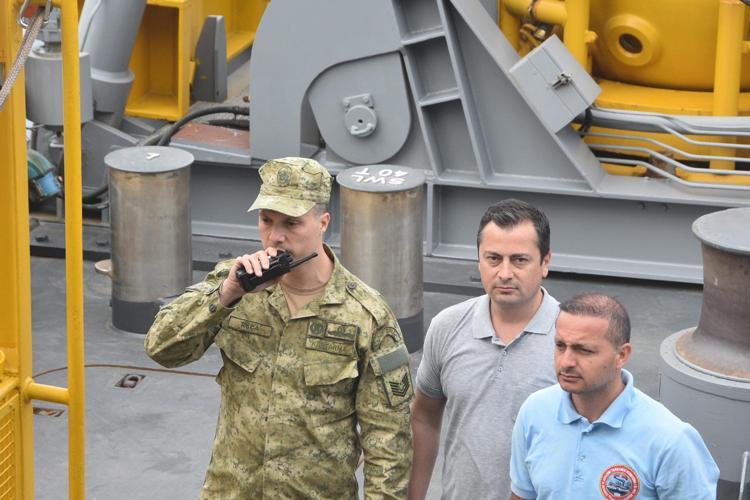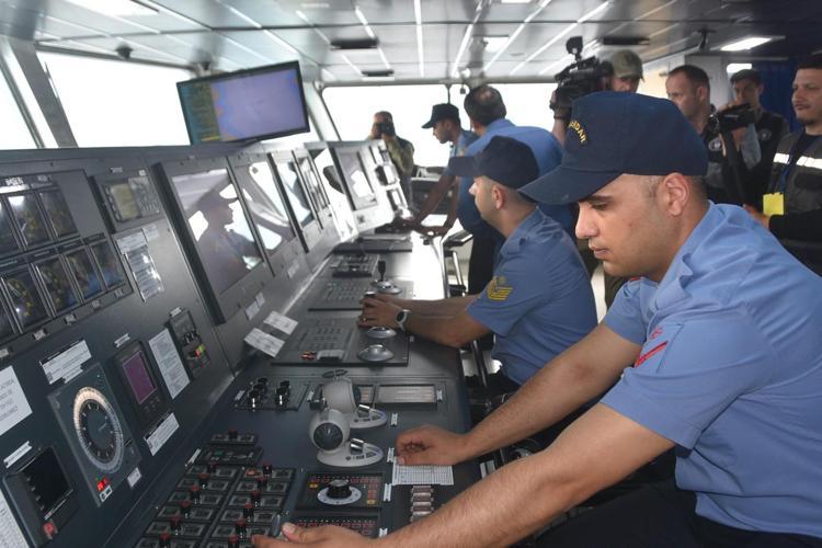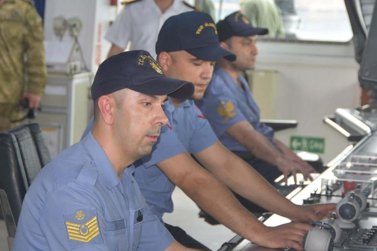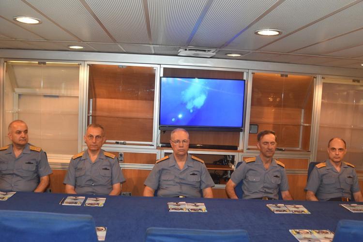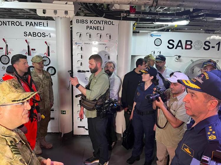 Daha sonra Deniz Kuvvetleri Komutanı Oramiral Ercüment Tatlıoğlu, mürettebat ve yurt dışından gelen gözlemcilerle fotoğraf çektirdi.