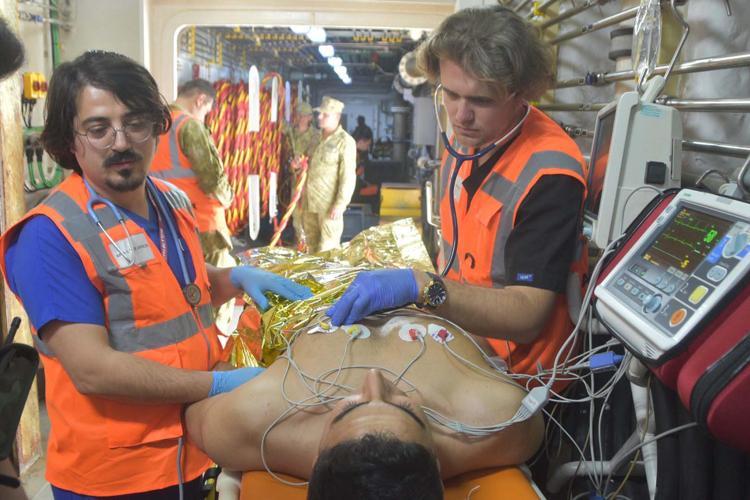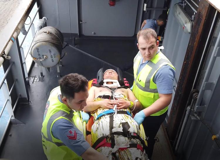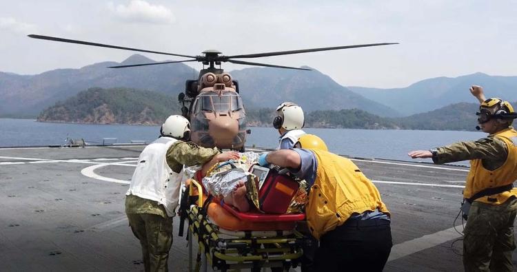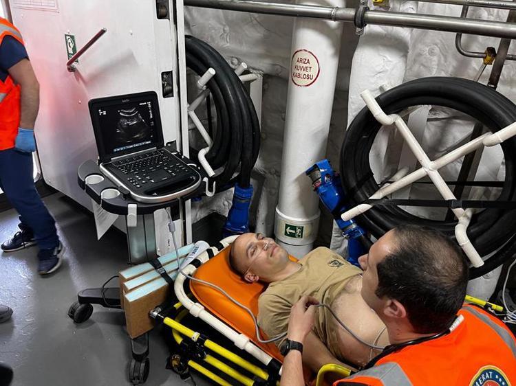 Burada uzman ekipler, kazazedelere gerekli müdahaleleri yaptı. Sağlık durumu ağır olan kazazedelerden 1'i, geminin güvertesine indirilen helikopterle tam teşekküllü hastaneye götürüldü.