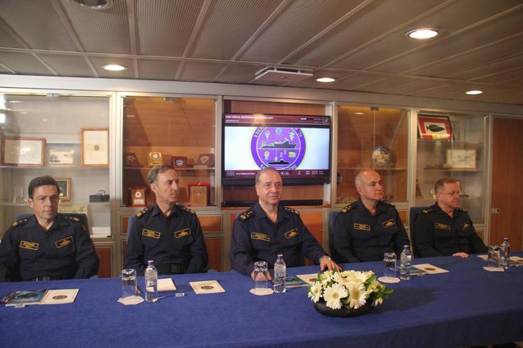 Brifinge Deniz Kuvvetleri Komutanı Oramiral Ercüment Tatlıoğlu, Donanma Komutan Yardımcısı Koramiral Yalçın Payal, Güney Deniz Saha Komutanı Koramiral Rafet Oktar, Harp Filosu Komutanı Tümamiral Mehmet Baybars Küçükatay, Kuzey Deniz Saha Komutanı Tümamiral Aziz Bakıoğlu, Denizaltı Filosu Komutanı Tümamiral Timur Yılmaz, Sualtı Harekat ve Kurtarma Komutanı Tuğamiral Eren Günay, Duayen Ataşe Albay Nicolas Presson, Aksaz Deniz Üs Komutanı Tuğamiral Hamdi Abanoz, Aksaz Tersanesi Komutanı Tuğamiral Cemalettin Çiftçi, Deniz Kuvvetleri Komutanlığı Sistem Proje ve Planlama Yönetimi (SPPY) Başkanı Tuğamiral Gökçen Fırat, Deniz Kuvvetleri Komutanlığı Harekat Eğitim Daire Başkanı Tuğamiral Halil İlker Avcı, Lojistik Destek Görev Grup Komutanı Tuğamiral Lütfü Sezgin ve Güney Görev Grup Komutanı Tuğamiral İlyas Ergel katıldı.