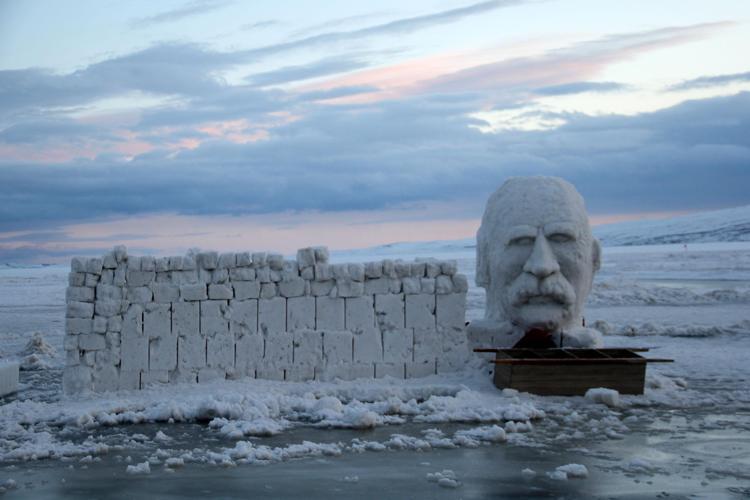 Yönetmen Çelik, Kurtiz’in hayalini gerçekleştirmek için Çıldır Gölü'nde kardan heykelini ve yanı başında da filmlerin oynayacağı kardan beyaz perdeyi yaptırdı.