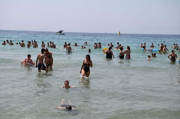 Aydın'ın Kuşadası ilçesinde Kurban Bayramı'nın ikinci gününde plajlar dolup taştı.