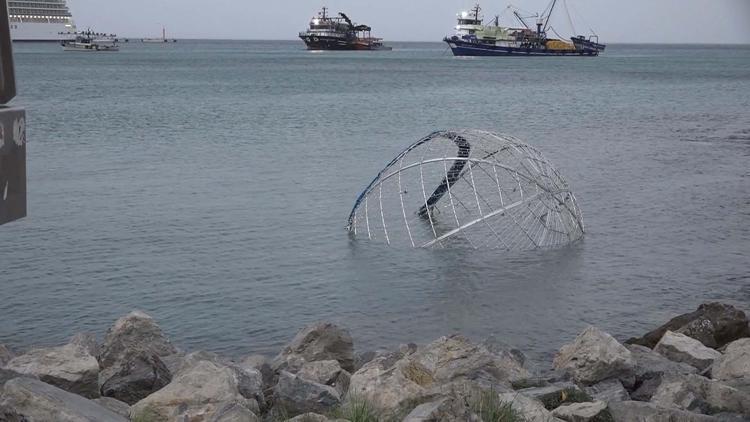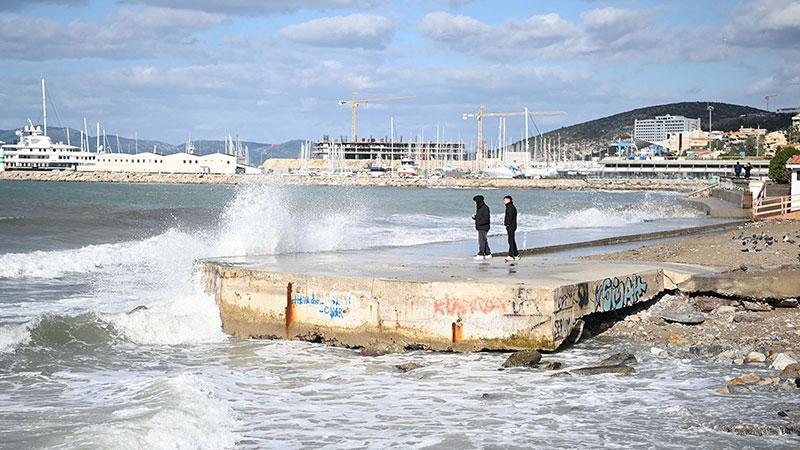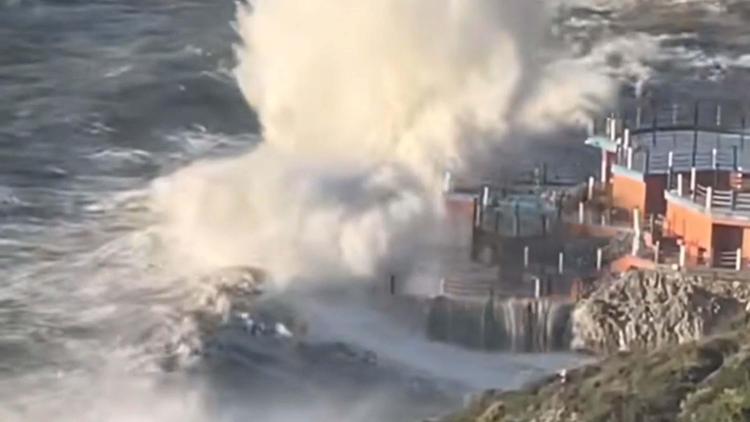 AYDIN'ın Kuşadası ilçesinde etkili olan sağanak ve kuvvetli fırtına, yaşamı olumsuz etkiledi. Su birikintileri oluşan yollarda trafik aksadı, yılbaşı için kurulan metal kar küresi denize uçtu, sahildeki dev dalgaların kıyıya vurma anları ise cep telefonu kamerasına yansıdı.