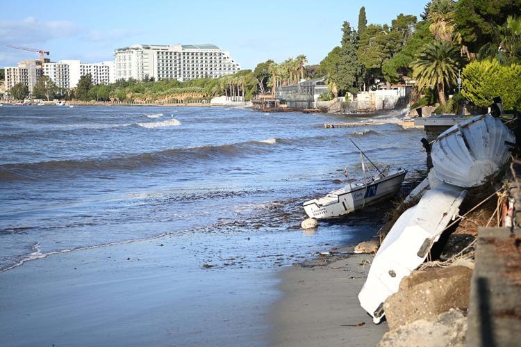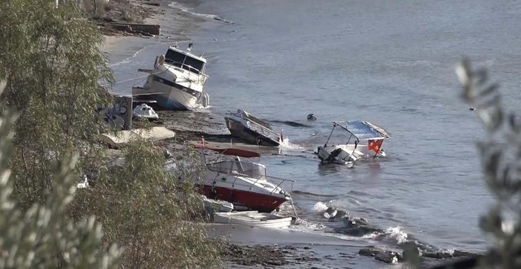 Kuşadası'ndaki sağanak nedeniyle derelerden akan çamurlu su denizde renk değişimine neden oldu. Karaova Mahallesi'ndeki sahil şeridinde denizin bazı bölümleri kahverengiye döndü. Aynı bölgede 4 balıkçı teknesi de karaya vurdu. Kuvvetli fırtına nedeniyle sahilde oluşan dev dalgaların kıyıya vurma anları da cep telefonu kamerasıyla kaydedildi.