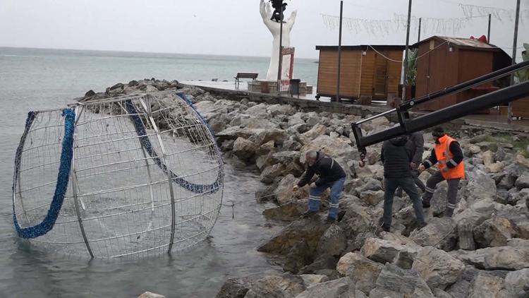 Zaman zaman etkisini arttıran fırtınada çok sayıda ağaç devrildi. İlçe merkezinde bulunan İsmail Cem Dostluk ve Barış Merkezi'nde de yılbaşı dolayısıyla kurulan metal kar küresi sabitlendiği yerden kopup, denize uçtu. Yılbaşı süsünü, belediye yetkilileri yaklaşık yarım saatlik çalışmanın ardından vinçle denizden çıkarabildi.