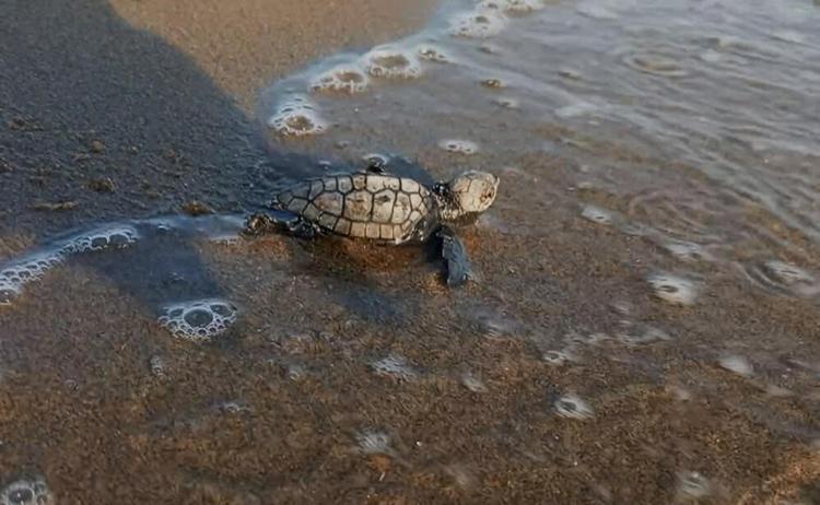 Kuşadası'nda yılın ilk caretta caretta yavruları sürpriz yuvadan çıktı