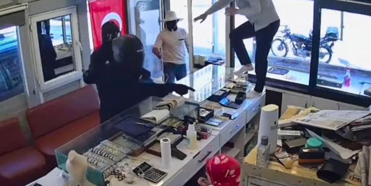 Kuyumcu, silahlı soyguncuları bıçak çekerek uzaklaştırdı