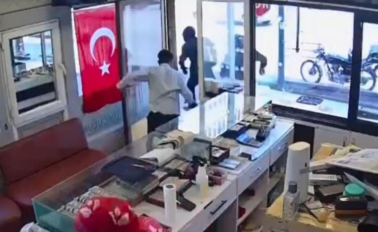 Soygun girişimi, iş yerinin güvenlik kamerasına yansıdı.