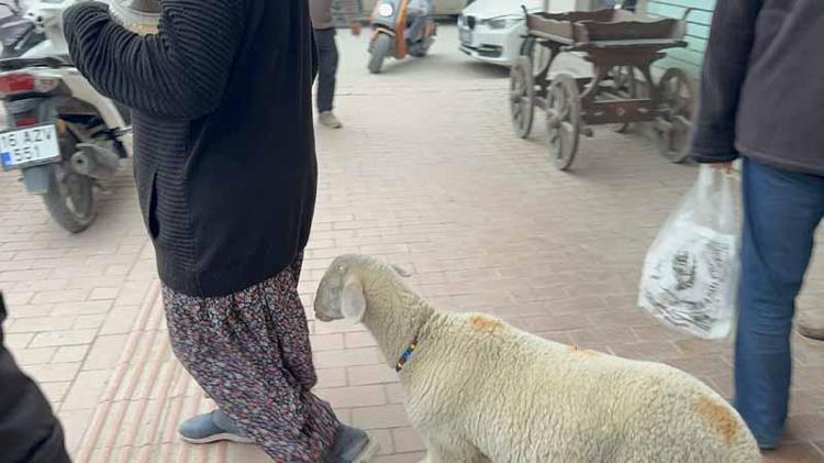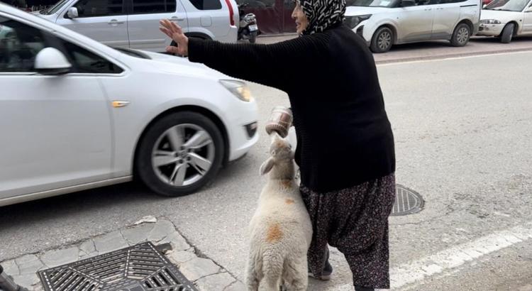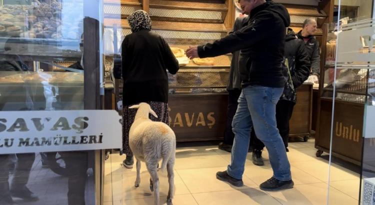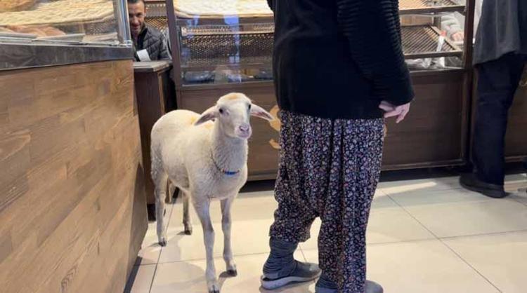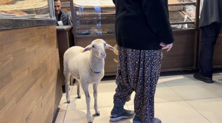 Kuzu 'Çorap', yanından ayrılmadığı sahibi ile pide sırasına giriyor