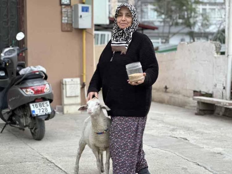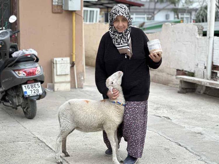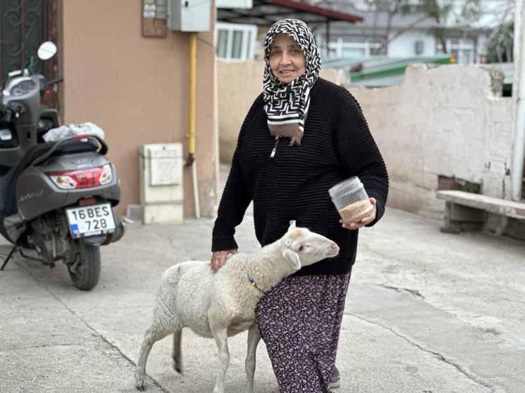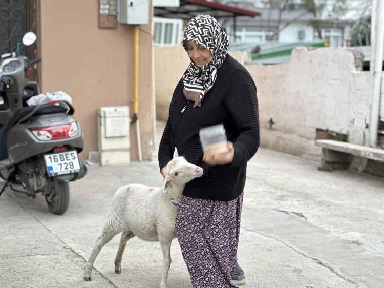 Mustafa Kemal Paşa Mahallesi'nde yaşayan 4 çocuk annesi Müyesser Sevinç, 10 günlükken annesi tarafından emzirilmeyen ikiz kuzulardan birini sahiplenerek büyütmeye başladı.